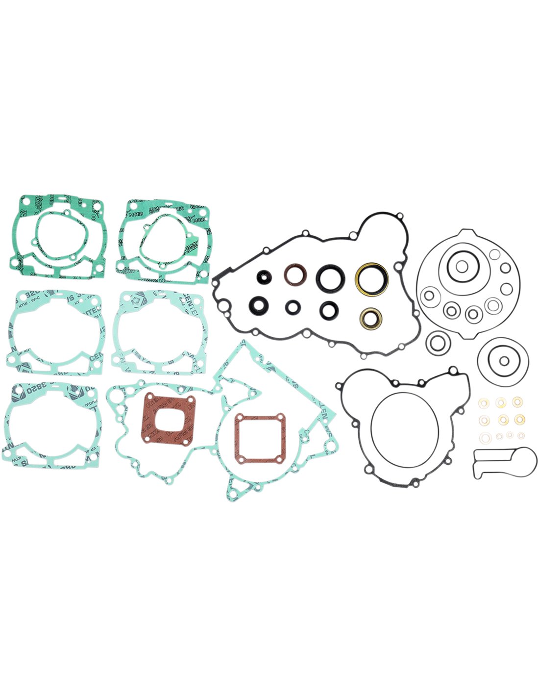 Juntes de culata amb xapa d'acer ondulada recoberta de goma Les juntes de base de cilindre d'acer tou estan recobertes de goma Els materials base en acer presenten una alta resistència a la tracció i pressió constant El revestiment transparent revolucionari garanteix un segellat perfecte fins i tot a temperatures extremadament altes Motllura de silicona blava d'alta temperatura en les juntes planes més crítiques Inclou totes les juntes de gran qualitat, les peces de goma i els retens guia de vàlvula per al motor