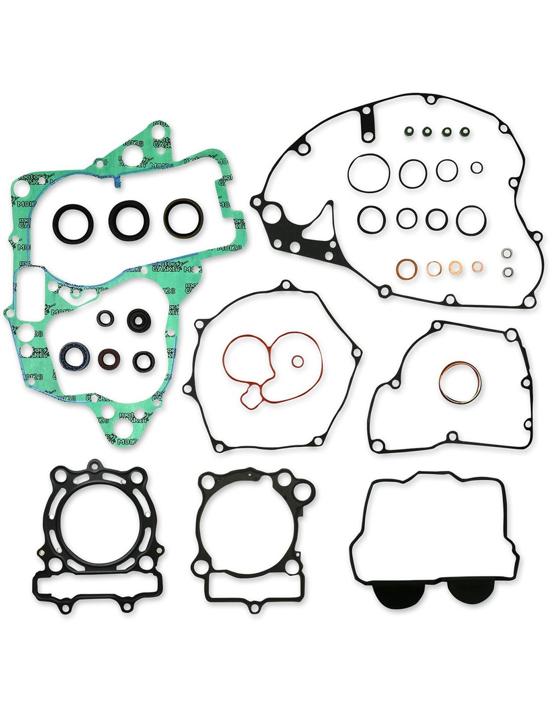 Juntes de culata amb xapa d'acer ondulada recoberta de goma Les juntes de base de cilindre d'acer tou estan recobertes de goma Els materials base en acer presenten una alta resistència a la tracció i pressió constant El revestiment transparent revolucionari garanteix un segellat perfecte fins i tot a temperatures extremadament altes Motllura de silicona blava d'alta temperatura en les juntes planes més crítiques Inclou totes les juntes de gran qualitat, les peces de goma i els retens guia de vàlvula per al motor