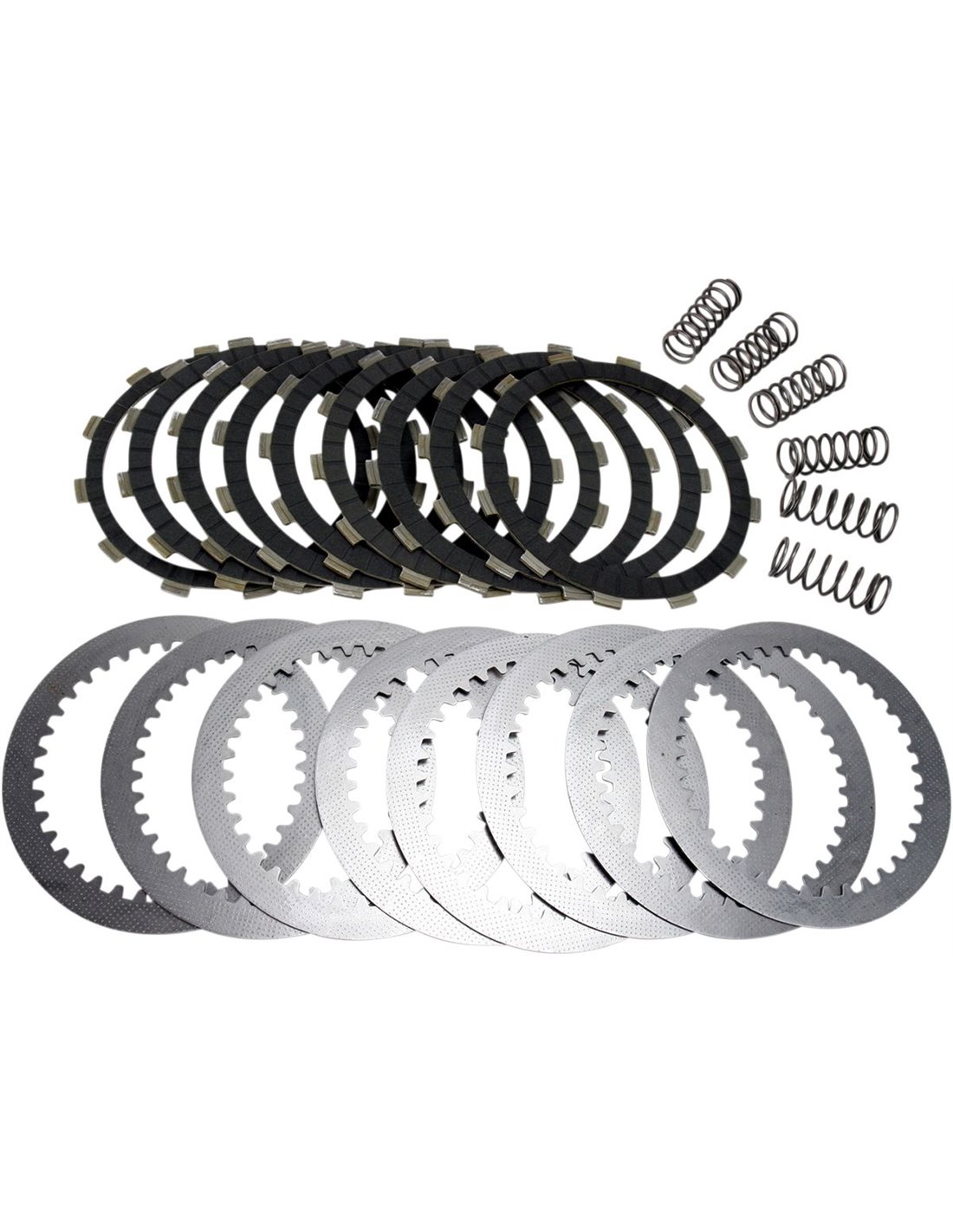 Revestiments resistents a base de suro impregnats d'aliatge i anti-onades per a una captació suau de l'embragatge. Permetre la modulació, a diferència dels embragatges de paper que tendeixen a arrabassar-se. El joc complet del motor de plaques de fricció, molles HD i plaques separadores d’acer evita el desgast prematur de les plaques accionades, l’enfosquiment de l’oli i la pèrdua d’alçada de la pila. Construït amb suports d'alumini que es distribueixen per estendre la càrrega a la cistella de l'embragatge i evitar que la cistella de l'embragatge es pugui "obstaculitzar". 10-15% de ressorts d'embragatge de gran resistència.