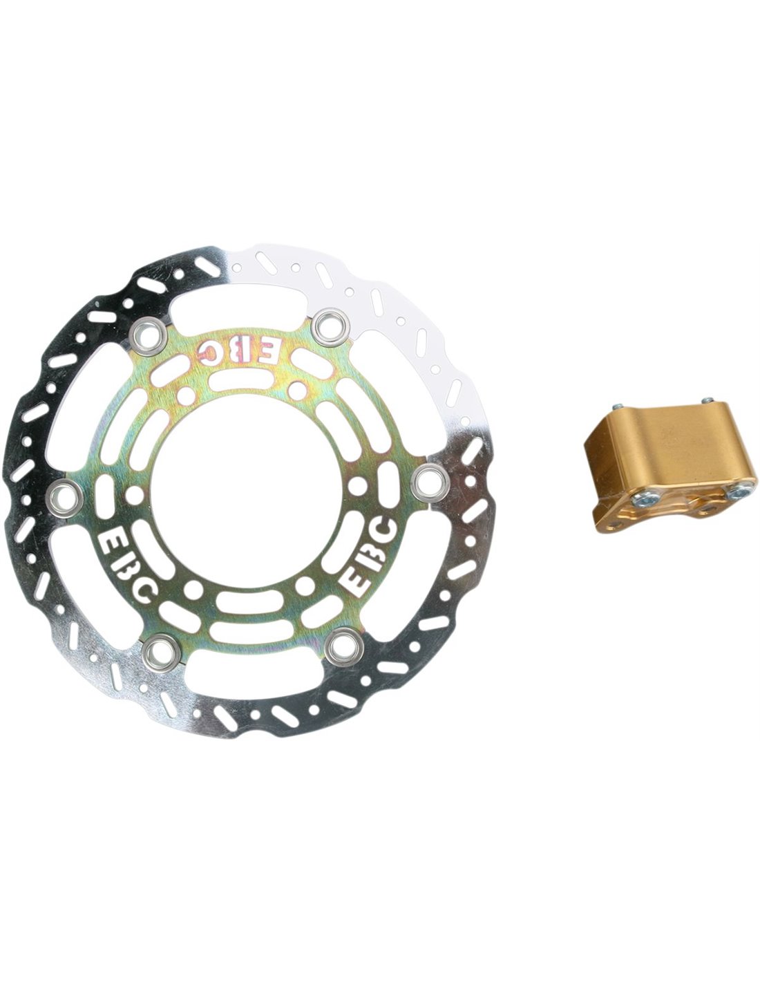 Fabricat en acer tractat tèrmicament laminat en laminat alemany. Perfil de rotor de fre de contorn amb aspecte Super-trick. La construcció en acer al carboni tractat tèrmicament té un índex de fricció més alt que l’acer inoxidable per a una major potència de frenada. El disseny del rotor redueix el pes. L’acabat anoditzat amb brillantor daurat evita la corrosió.
