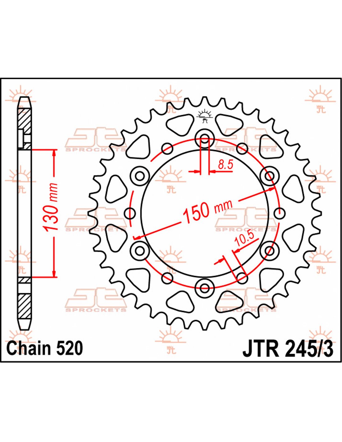 Dissenyat per ordinador per aconseguir la màxima resistència amb un pes mínim. JT combina tecnologia d’avantguarda amb materials de primera qualitat per produir el pinyó de màxima qualitat. Cada pinyó compleix o supera els estàndards de qualitat més alts establerts per a la indústria de la motocicleta. Totes les rodes dentades són tractades tèrmicament i sorrejades per reduir la tensió superficial del material. Rodes dentades frontals fabricades amb acer C45 i aliatge d'acer cromoli SCM415; pinyons posteriors fabricats amb acer C45 d'alta qualitat o alumini.
