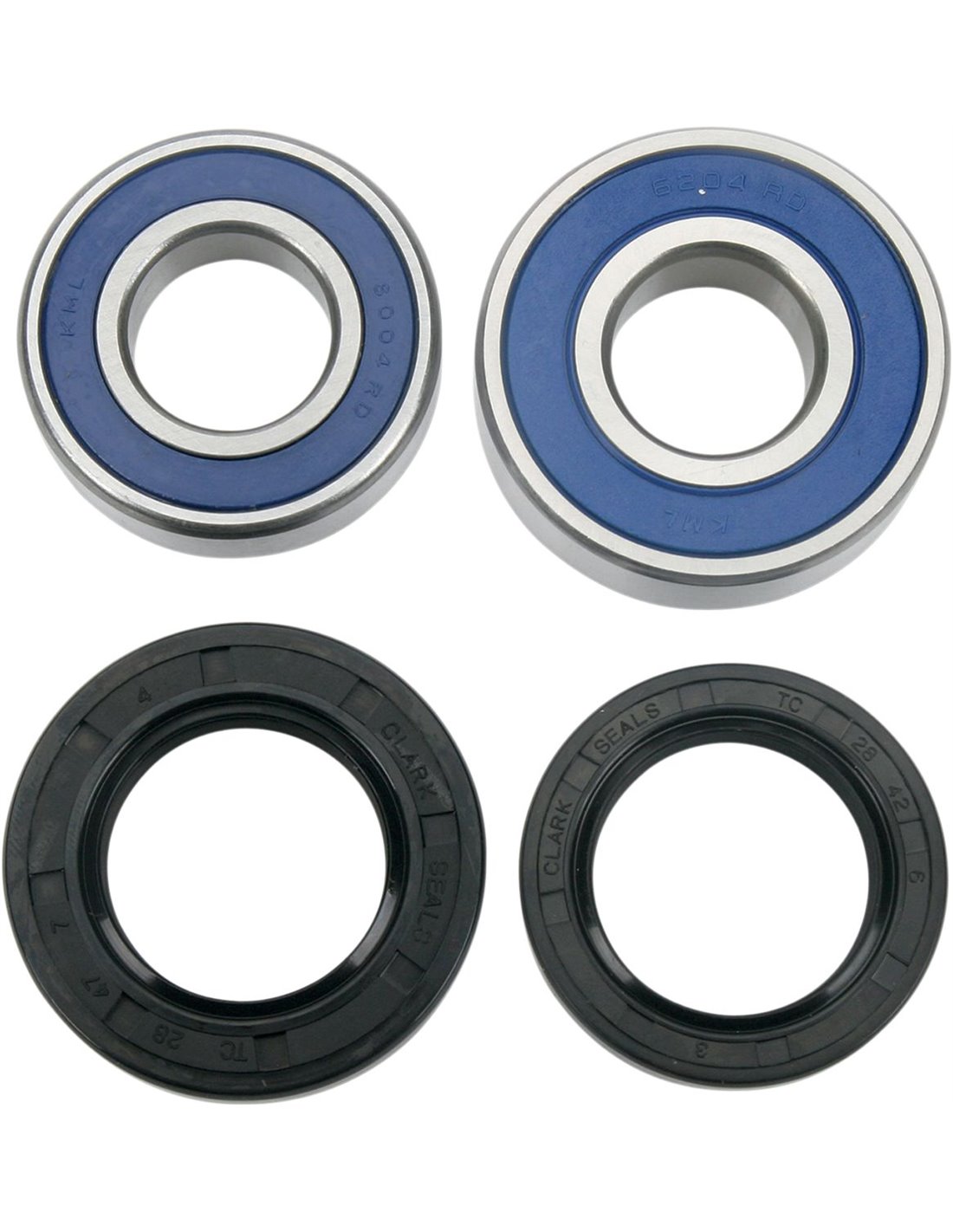 Els segells del coixinet són de goma de doble llavis que ofereixen una exclusió superior d’aigua, brutícia i sorra amb una millor retenció de greixos La molla d’ aleació d’acer garanteix una pressió constant sobre l’eix, allargant la vida del segell Les juntes de les rodes són d’elastòmer nitril tipus TC, dissenyades específicament per evitar l’aigua, la brutícia i la sorra Els segells tenen un diàmetre exterior recobert de goma que crea un segellat òptim al cub Els coixinets d'alta velocitat i baixa resistència són de qualitat EMQ Els kits inclouen tots els coixinets i segells necessaris