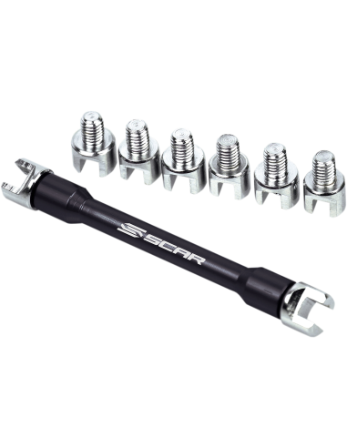 - Cabezales intercambiables para tuercas de radios de 8 tamaños diferentes