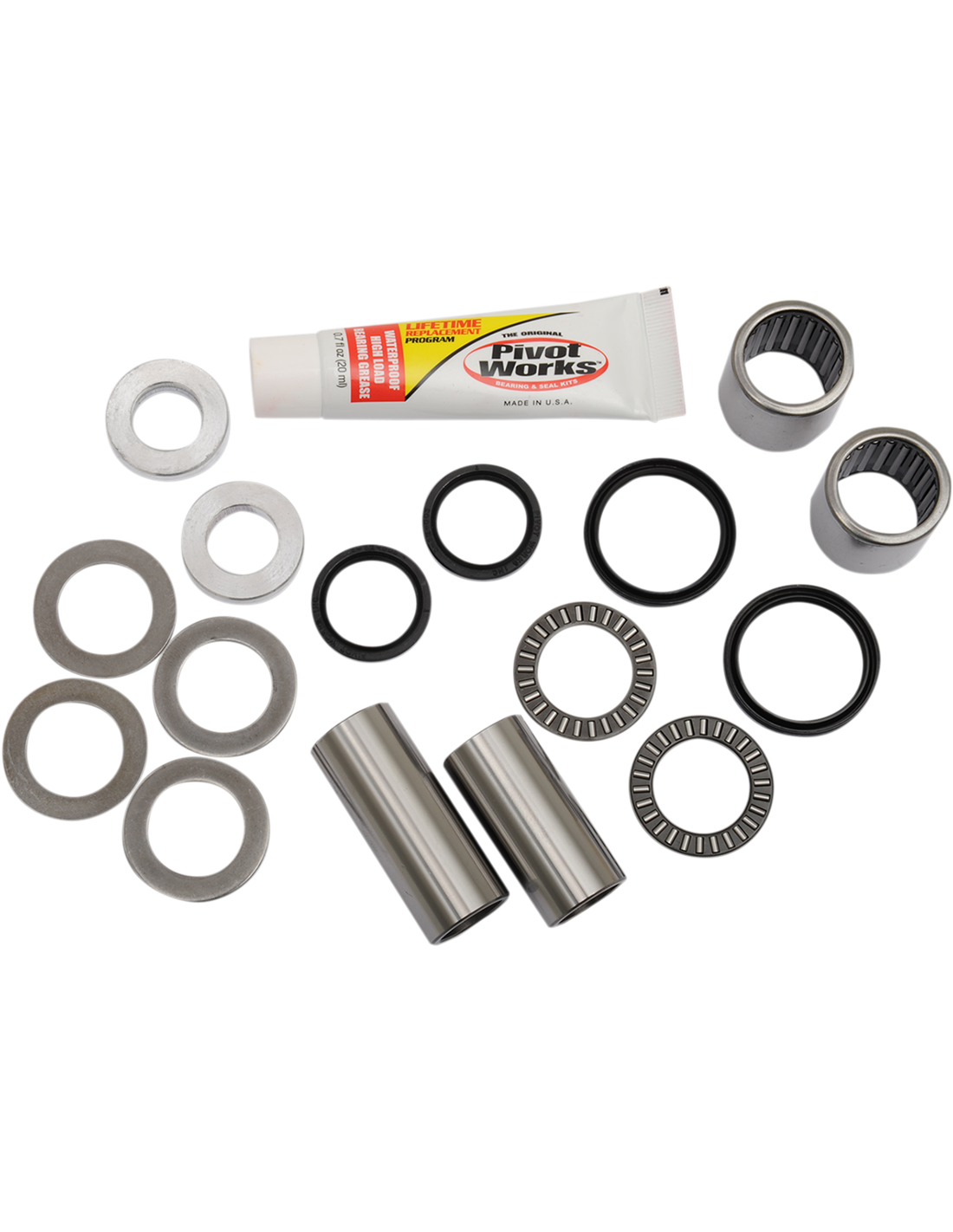 - Cada kit contiene rodamientos, pines, casquillos espaciadores y retenes fabricados según las especificaciones OEM para un ajuste perfecto