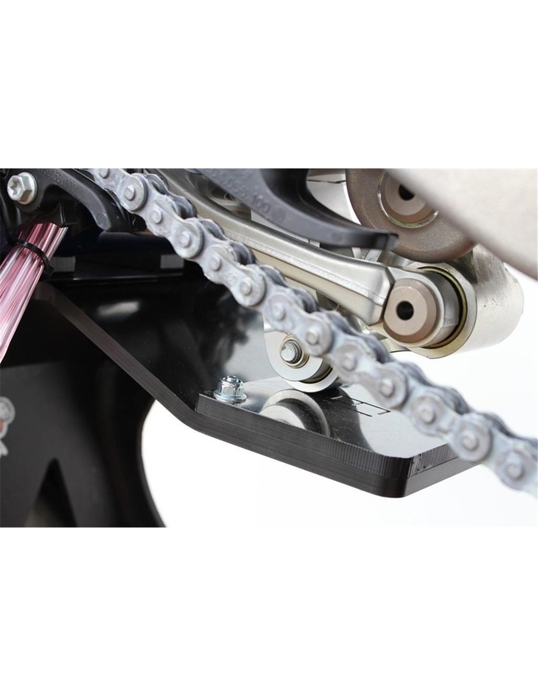 - Extended skid plate up to protect the shock absorber linkage
