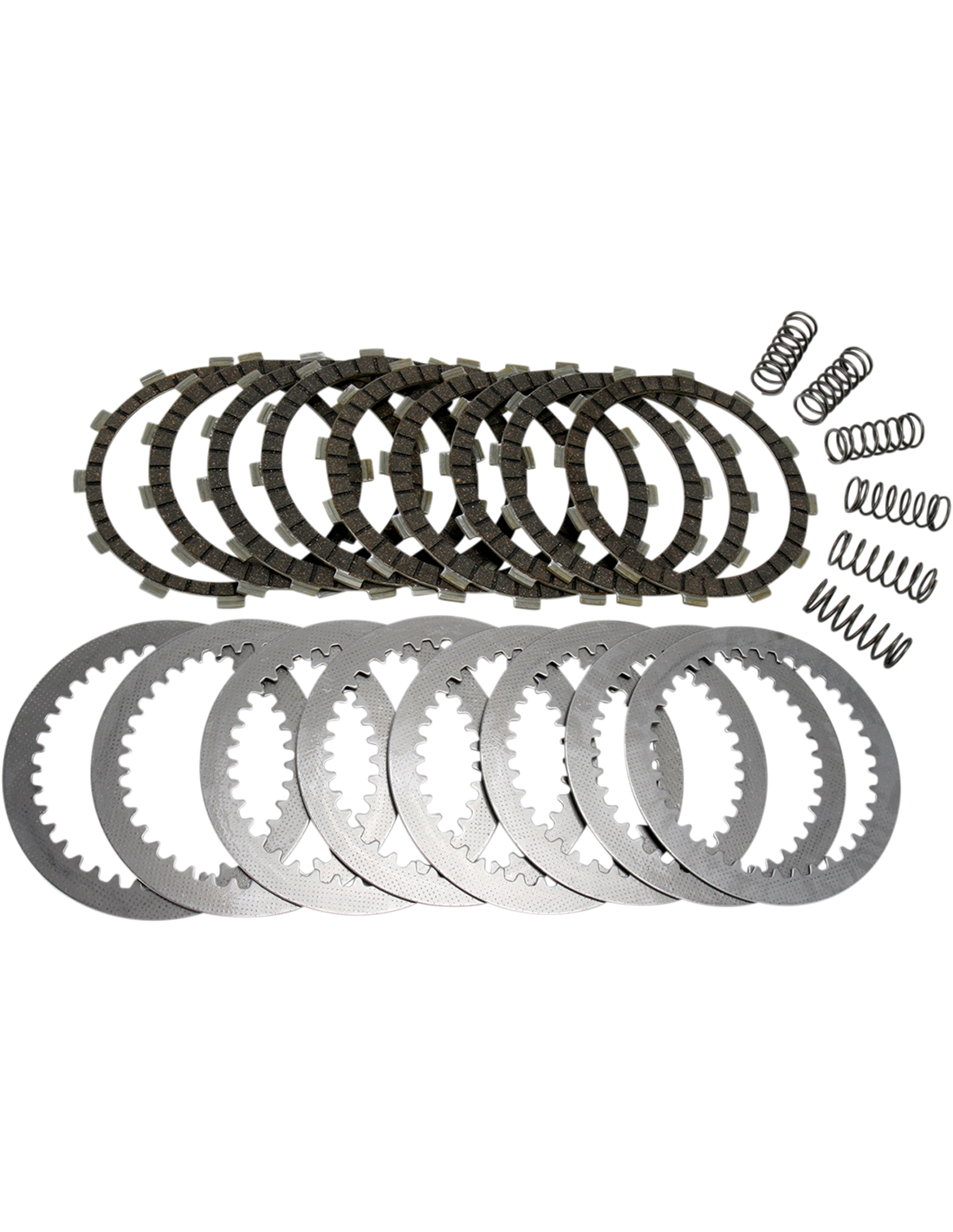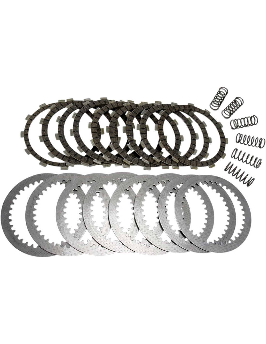 DRC Series Clutch KitAnti-swell, alloy-impregnated heavy-duty cork-based facings for smooth clutch take-up Allow modulation, unlike paper clutches that tend to snatch Complete engine set of friction plates, HD springs and steel separator plates prevent premature driven plate wear, oil muddying and loss of stack height Built with swagged aluminum carriers that spread the load on the clutch basket and prevent clutch basket "dogging" 10-15% uprated heavy duty clutch springs