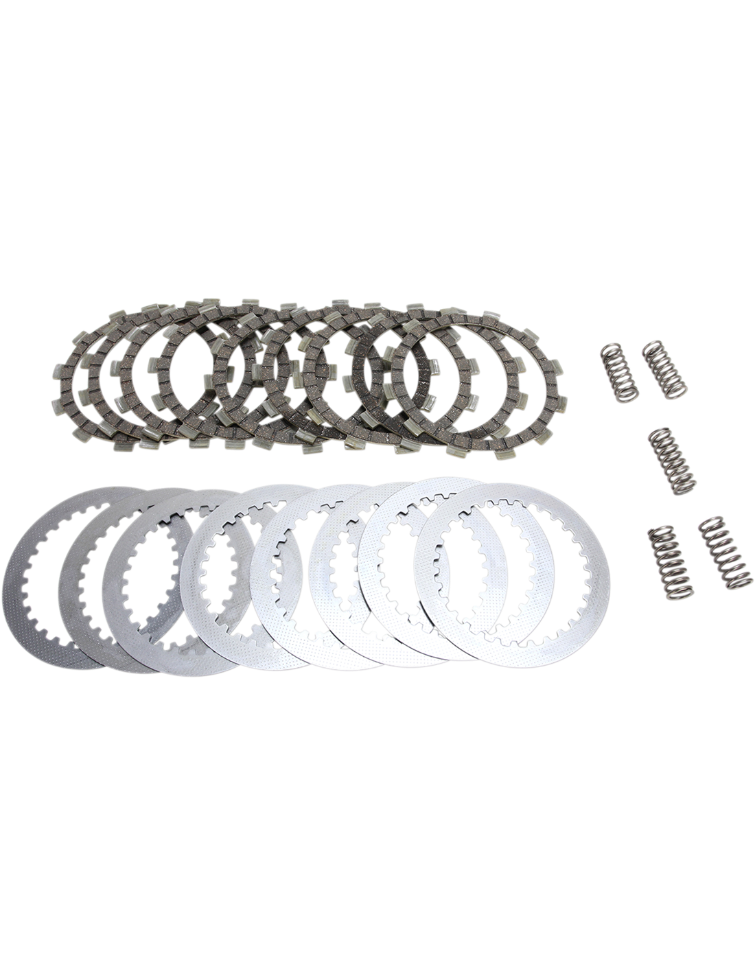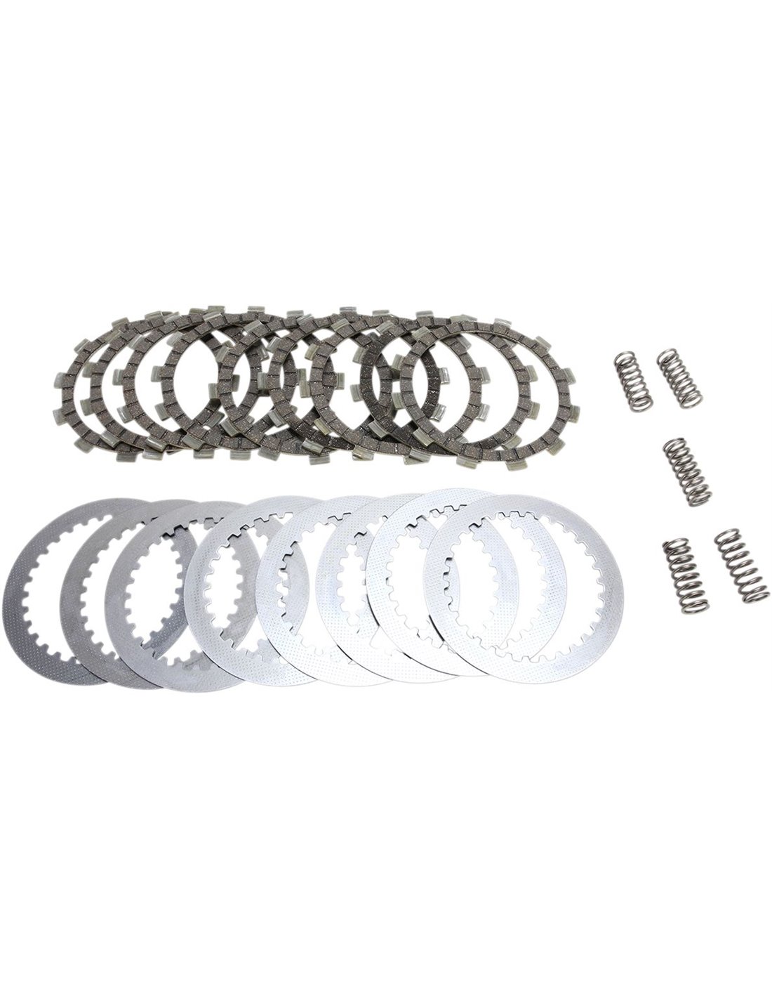 DRC Series Clutch KitAnti-swell, alloy-impregnated heavy-duty cork-based facings for smooth clutch take-up Allow modulation, unlike paper clutches that tend to snatch Complete engine set of friction plates, HD springs and steel separator plates prevent premature driven plate wear, oil muddying and loss of stack height Built with swagged aluminum carriers that spread the load on the clutch basket and prevent clutch basket "dogging" 10-15% uprated heavy duty clutch springs Not for use with 100% synthetic oil