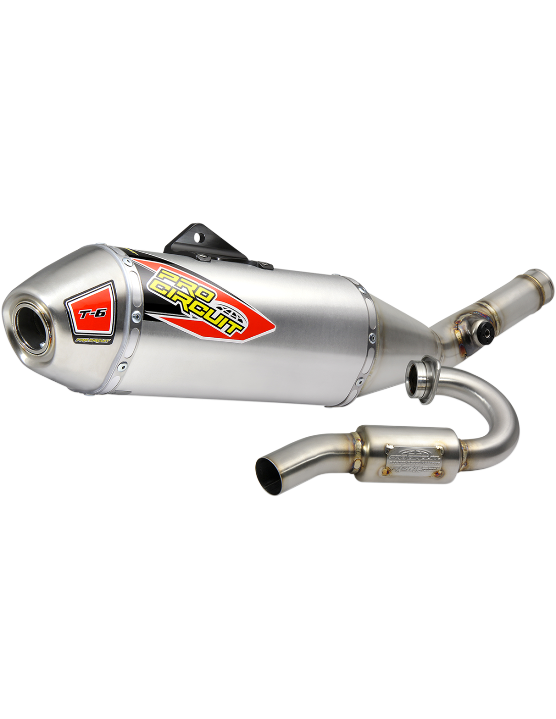 T-6 Exhaust SystemThe T-6 Stainless Steel Exhaust System offers the same benefits as Ti-6 Titanium Exhaust System, but the T-6 is constructed of stainless steel and aluminum for increased strength and durability while giving riders a more affordable alternative to titanium Comes with a removable United States Forest Service (USFS) Approved Spark Arrestor making it easy to alternate between off-road and closed course riding