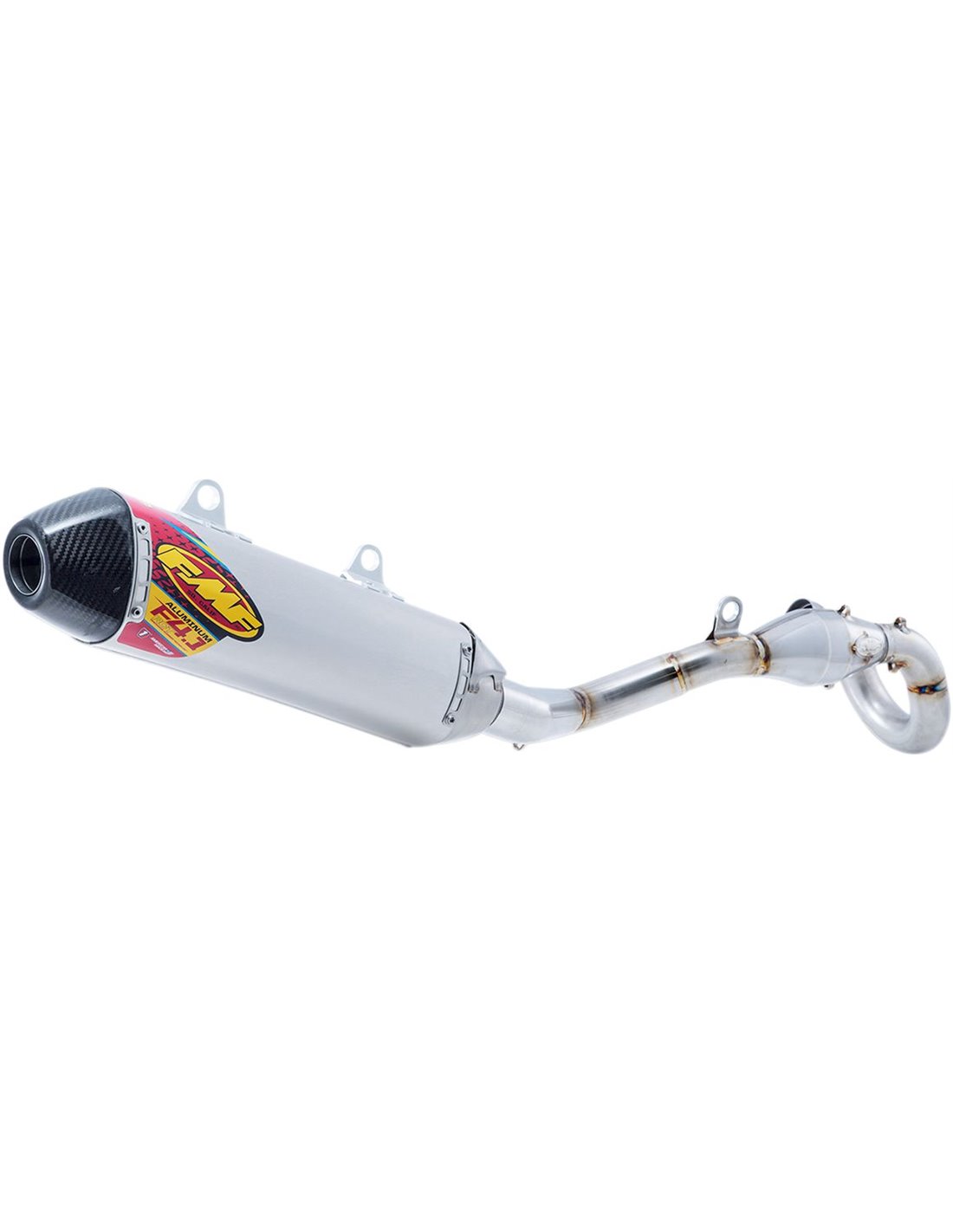 Factory 4.1 RCT Exhaust SystemThe Factory 4.1 RCT incorporates FMF Resonance Chamber Technology™ both internally and externally Shorter overall length that is less susceptible to crash damage and complementary to FMF's Factory Forward Engineering - moving the muffler closer to the motor to centralize mass The Factory 4.1 RCT is constructed from only aerospace grade materials that meet FMF's exacting specifications and is manufactured 100% at their Southern California factory Massive Power gains throughout the RPM range. Huge weight savings New RTS (Rapid Tuning System) Includes MegaBomb header Includes spark arrestor screen insert Includes quiet insert.