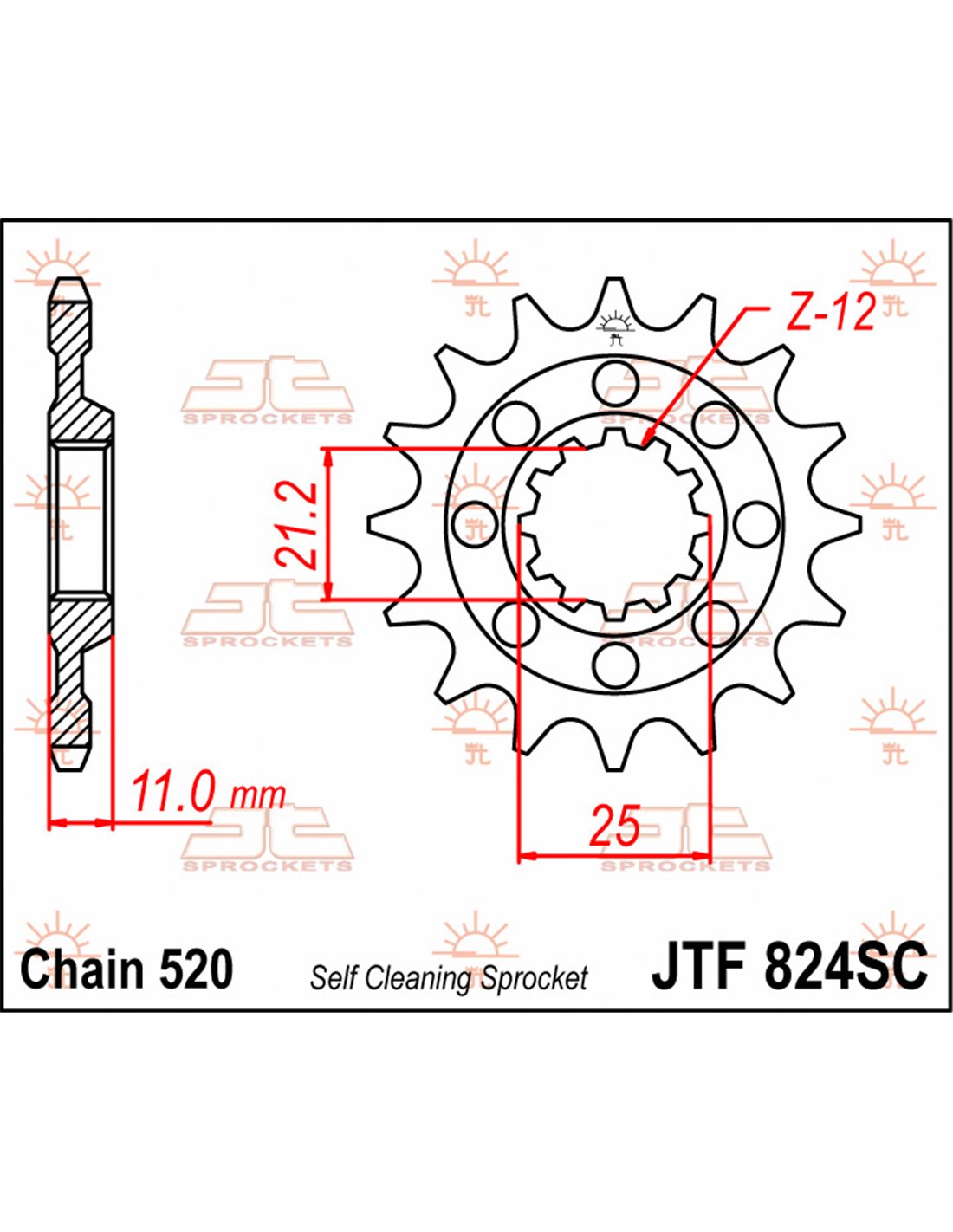 Front drive sprocket JTF824.14SC SELF CLEANING 14 teeth 520 PITCH NATURAL CHROMOLY STEEL ALLOY