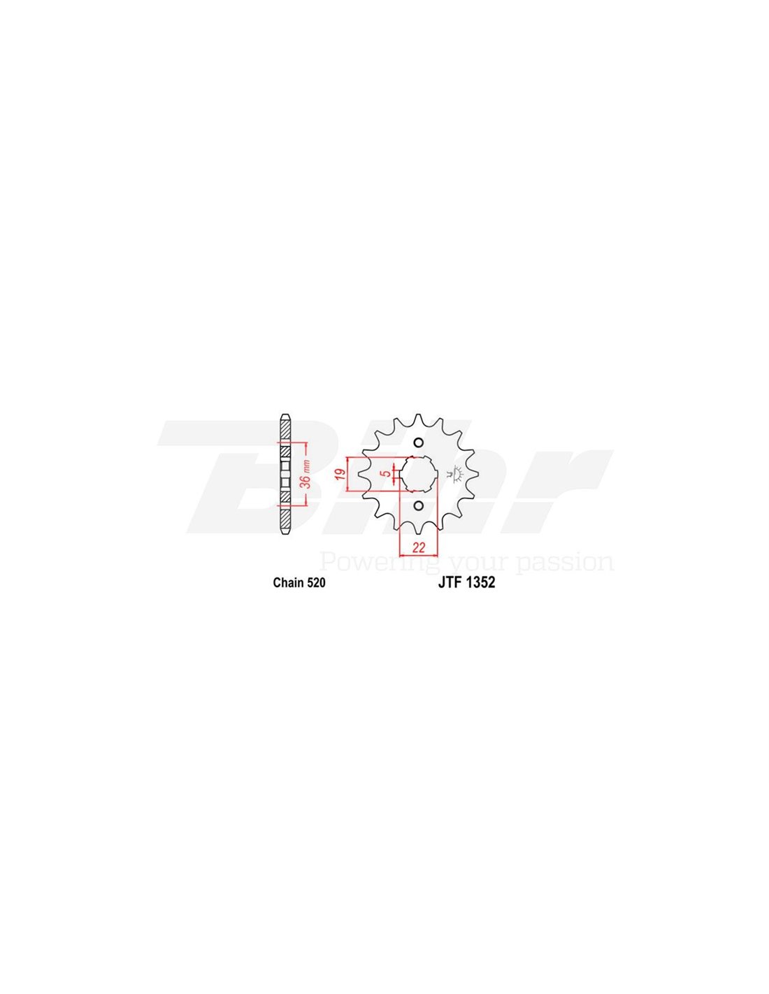 JT 1352 steel front drive sprocket with 12 teeth