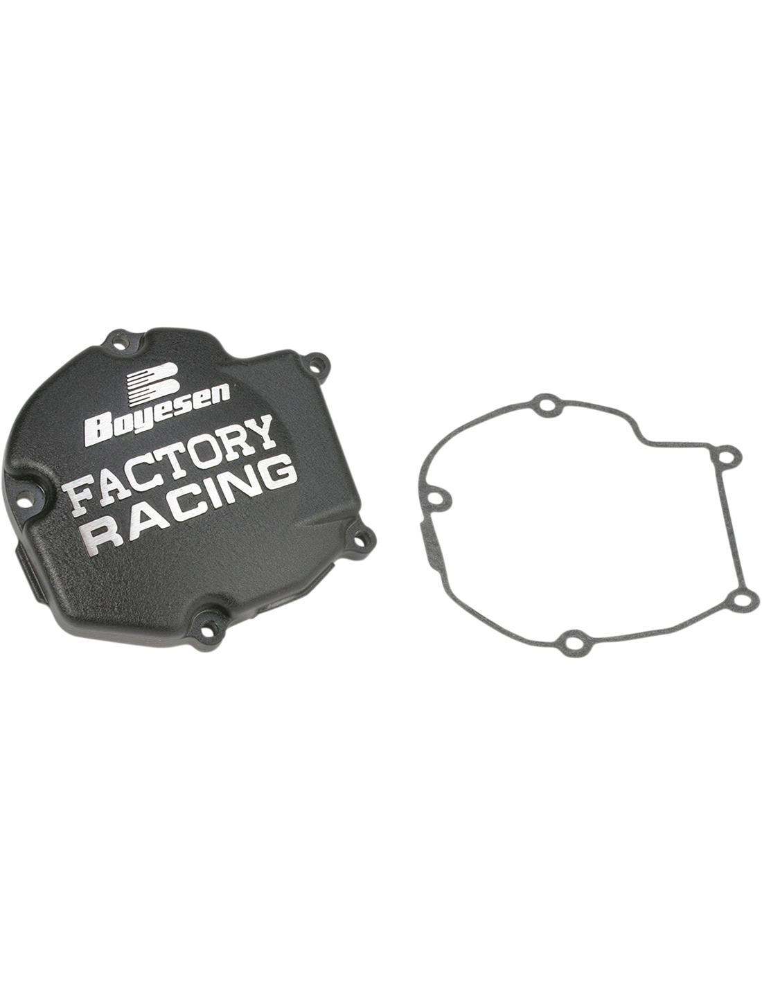 Factory Ignition CoverLook like a professional with the Factory Ignition Cover Seals properly, guarding inside of engine from dirt and water and outlasts stock covers Boyesen Factory Covers are cast from the highest grade of aluminum and are strong yet lightweight Super-tough, powder-coated finish resists weathering and wear and tear OEM paper gaskets can be reused, or use the supplied O-ring