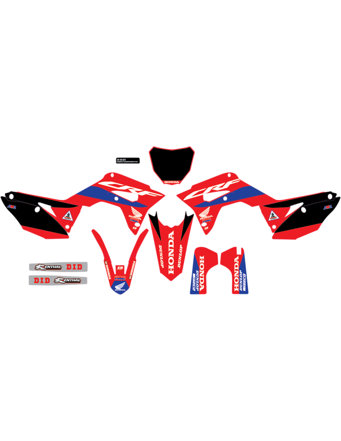 - Includes decals for radiator shrouds, tank, number plate, airbox, lower fork guards, front fender, rear fender and swingarm