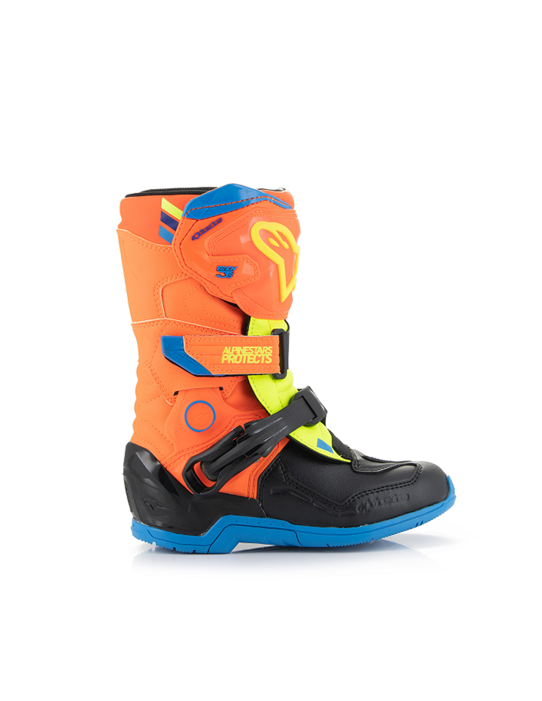 Naranja fluor. , Amarillo fluor. , Azul