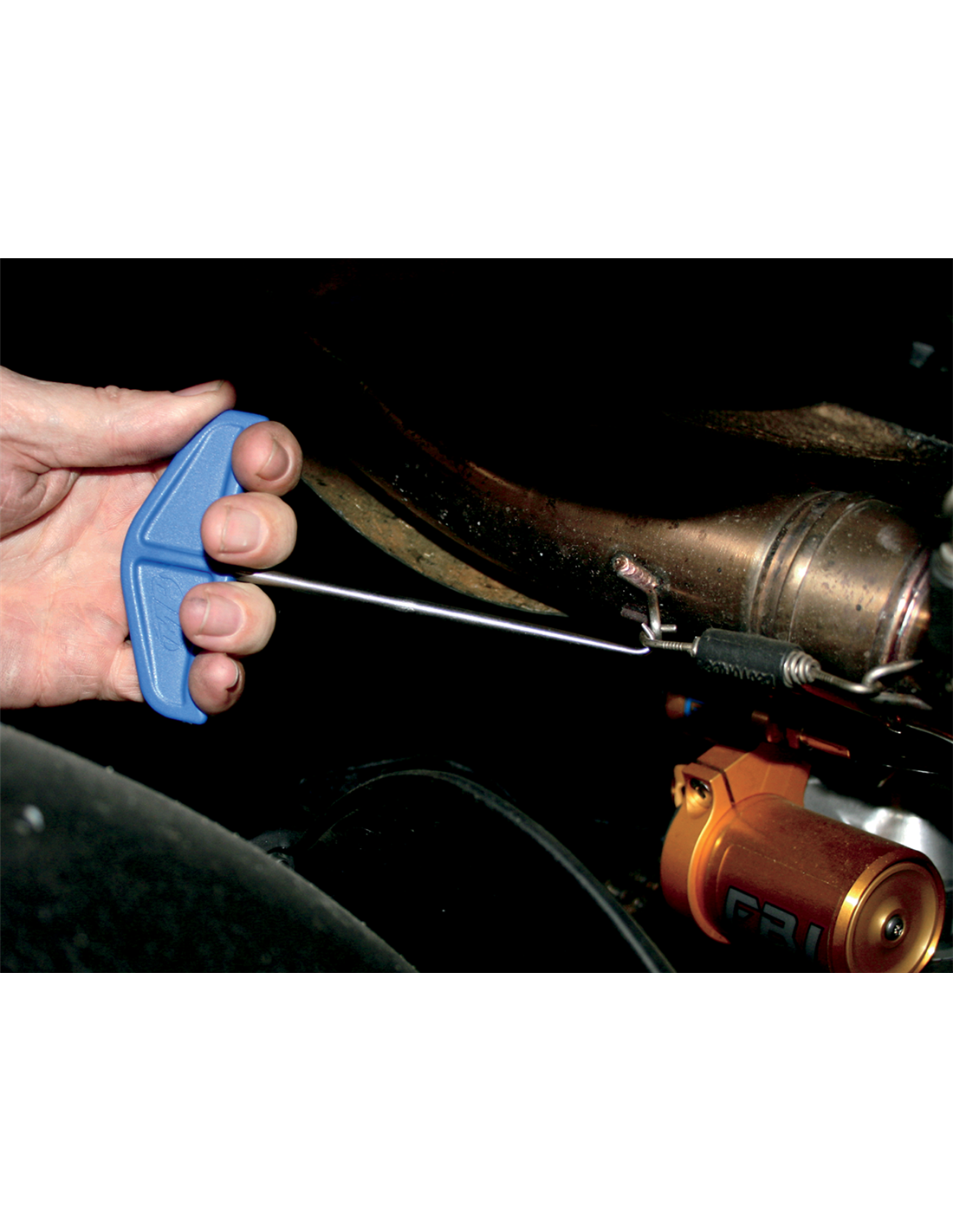 - Para la extracción de muelles de sistemas de escape, asientos y depósitos, pasadores, muelles de caballetes laterales y otros muchos componentes.