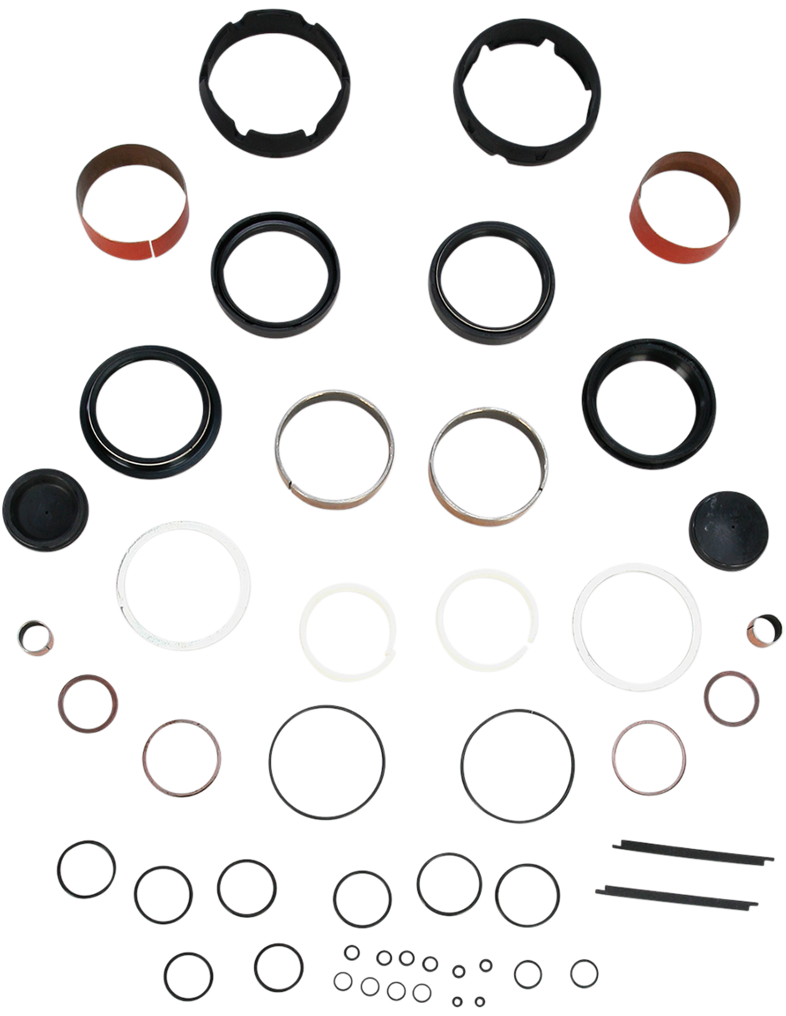 - Kits incluyen retenes, guardapolvos y casquillos superior e inferior