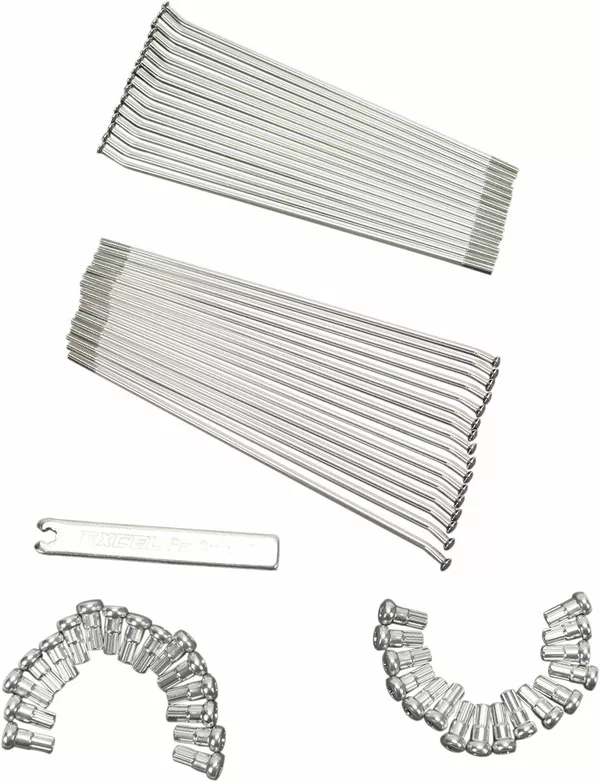 - Los sets incluyen radios aleados en acero inoxidable 302, pulidos y con un resistencia media a la tracción un 10% superior a la ofrecida por radios de serie