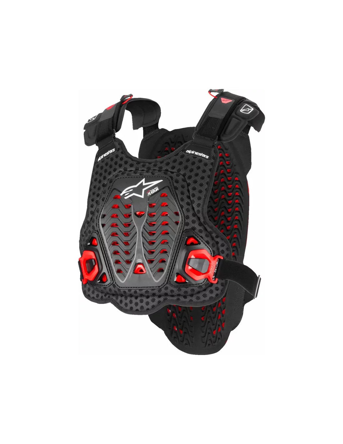 - Chest and back protectors are mounted on a highly perforated 3D mesh for airflow and breathability