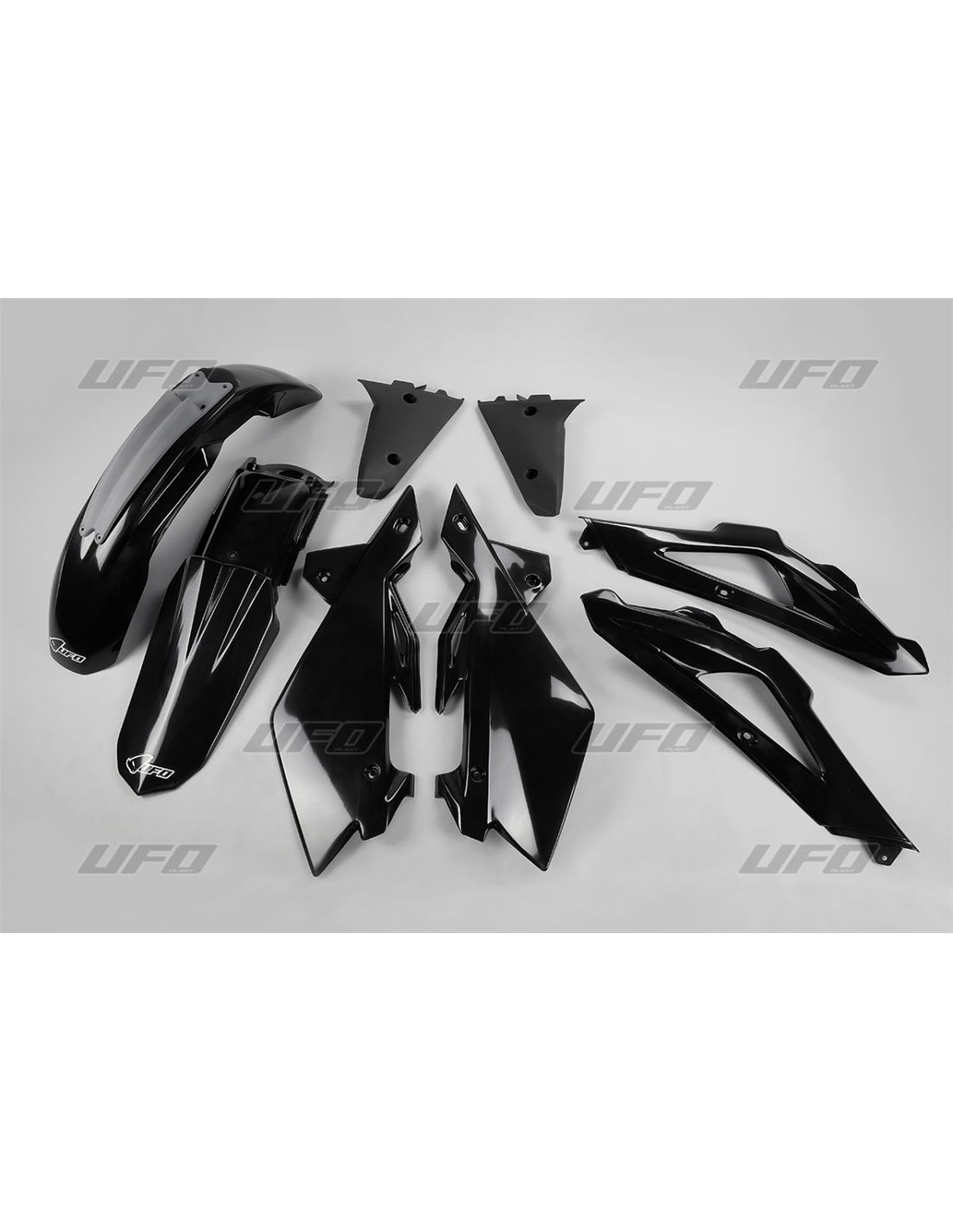 - Los kits completos incluyen el guardabarros delantero, el guardabarros trasero, la cubierta del radiador, los paneles portanúmero laterales y el panel portanúmero frontal; kits de guardabarros delantero y trasero disponibles por separado