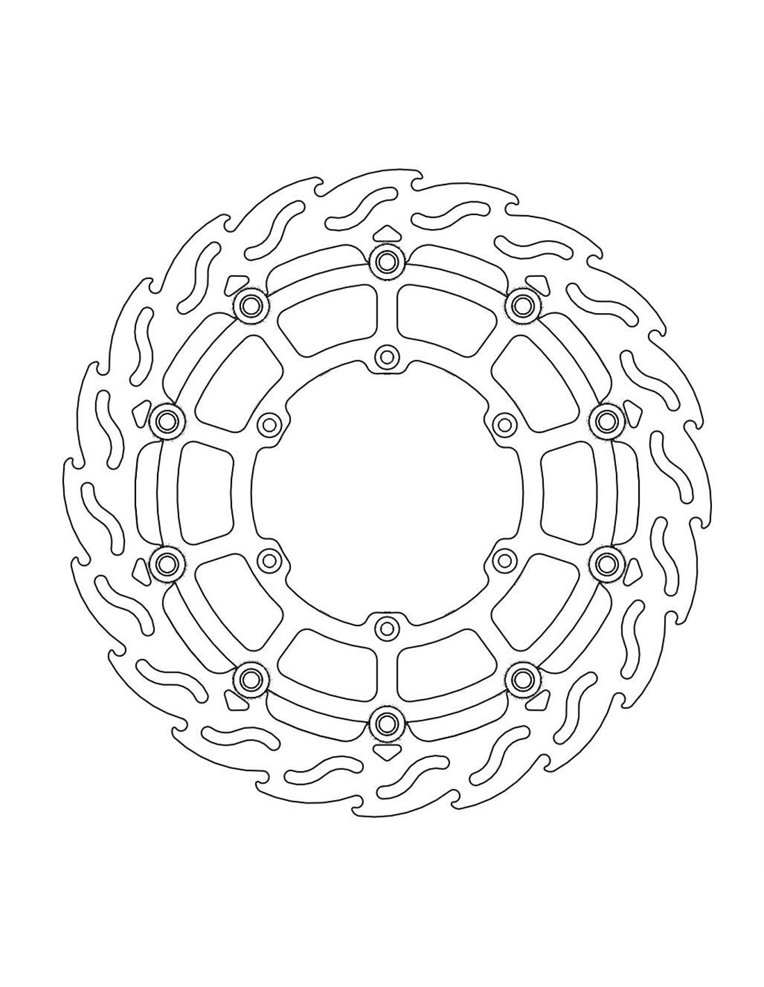 - Los discos de freno delanteros flotantes Flame de 320 mm están especialmente diseñados para usarse con pinzas de 4 pistones Moto-Master y no son un reemplazo de equipo original