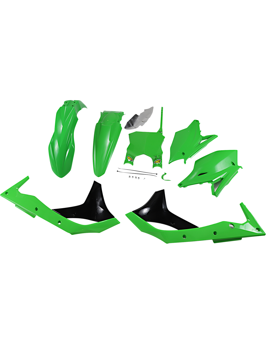 - Los kits de plásticos incluyen el guardabarros delantero, el guardabarros trasero, la cubierta de radiador, las tapas laterales y el portanúmeros delantero Stadium
