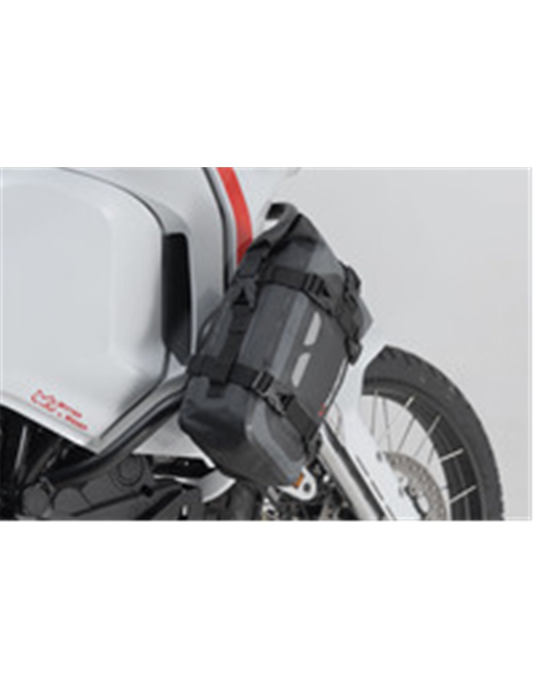 - D-rings allow the bag to be pulled tightly against the motorcycle