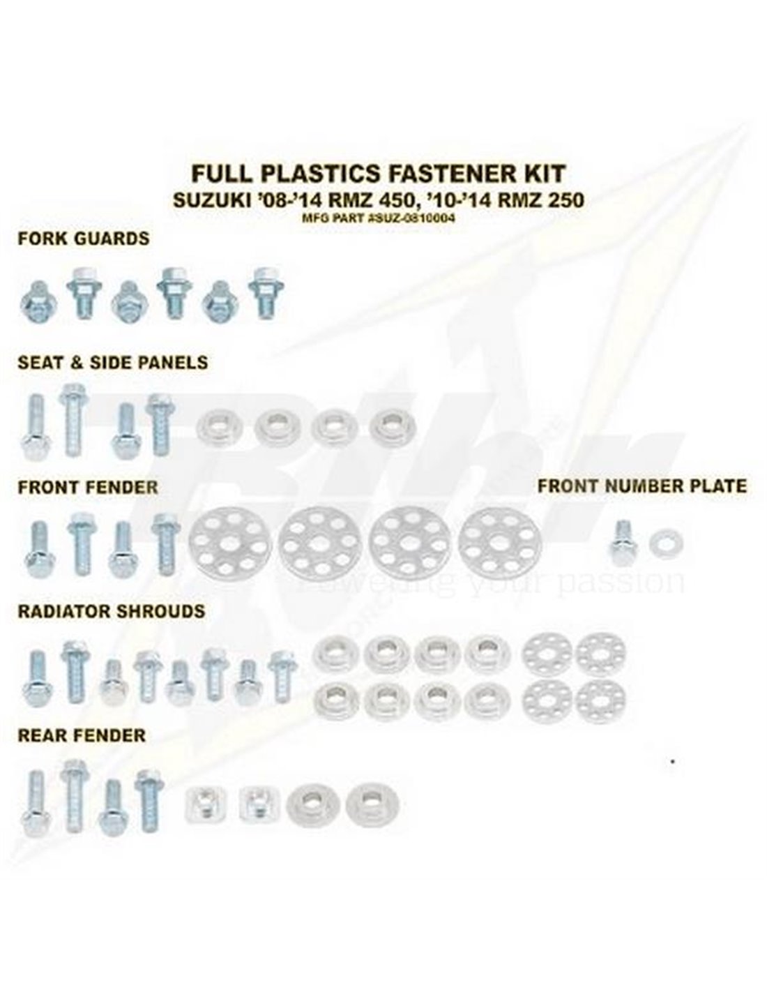 (marca, modelo, año)Kit tornillería de plástica Bolt 08-13 RMZ450 10-13 RMZ250