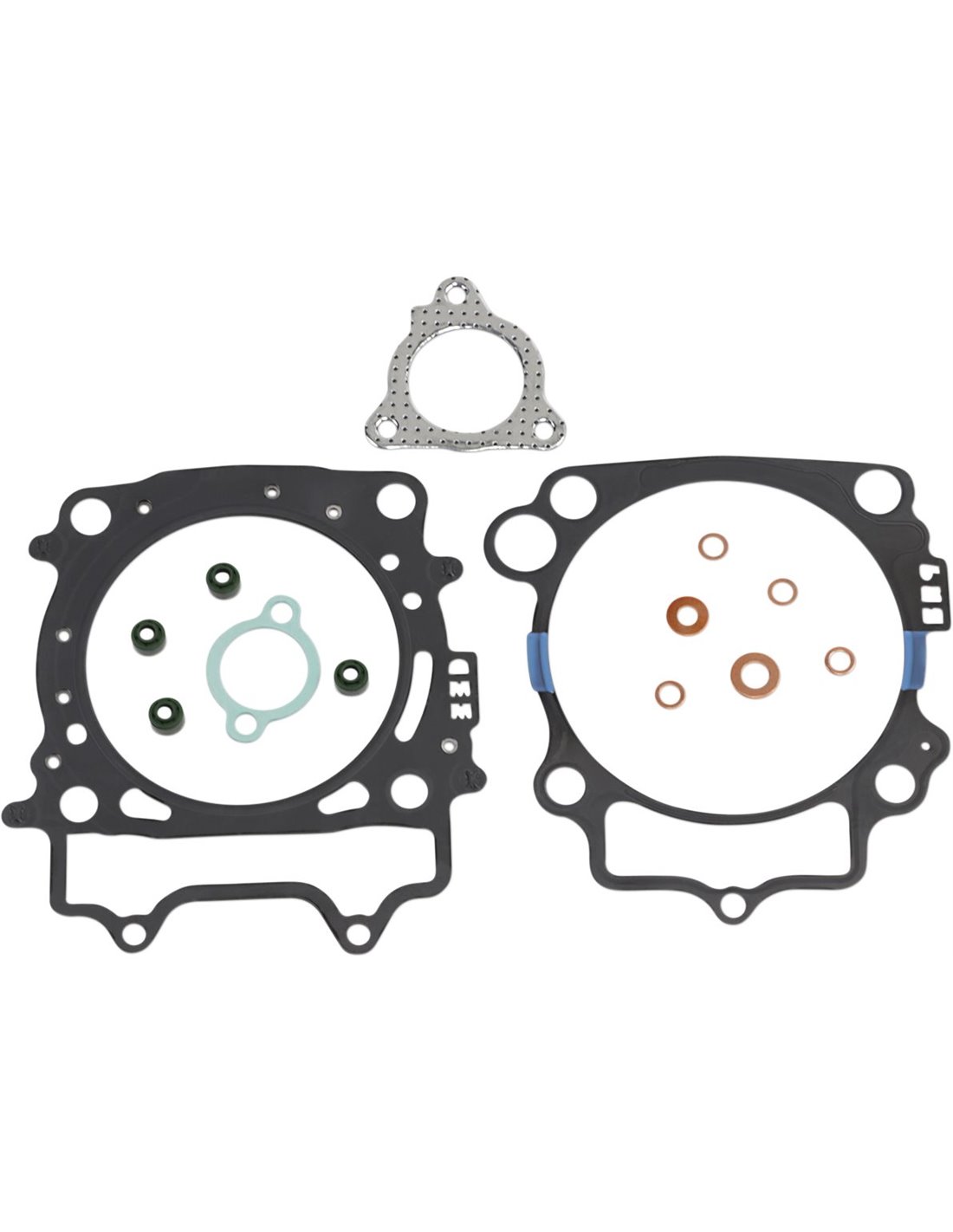 Jeu de joints de qualité supérieure d'Athena S.p.A. Joints de culasse en tôle ondulée caoutchoutée Les joints de base de cylindre en acier doux sont revêtus de caoutchouc Les matériaux de base en acier ont une résistance à la traction élevée et une pression constante Revêtement transparent révolutionnaire qui garantit une étanchéité parfaite même à des températures extrêmes Moulage en silicone bleu haute température sur les joints plats les plus critiques Les kits de joints supérieurs du moteur comprennent tous les joints nécessaires pour reconstruire le haut du moteur à partir du joint de base du cylindre vers le haut, y compris tous les joints en caoutchouc tels que les joints de culasse, les joints toriques et le joint.