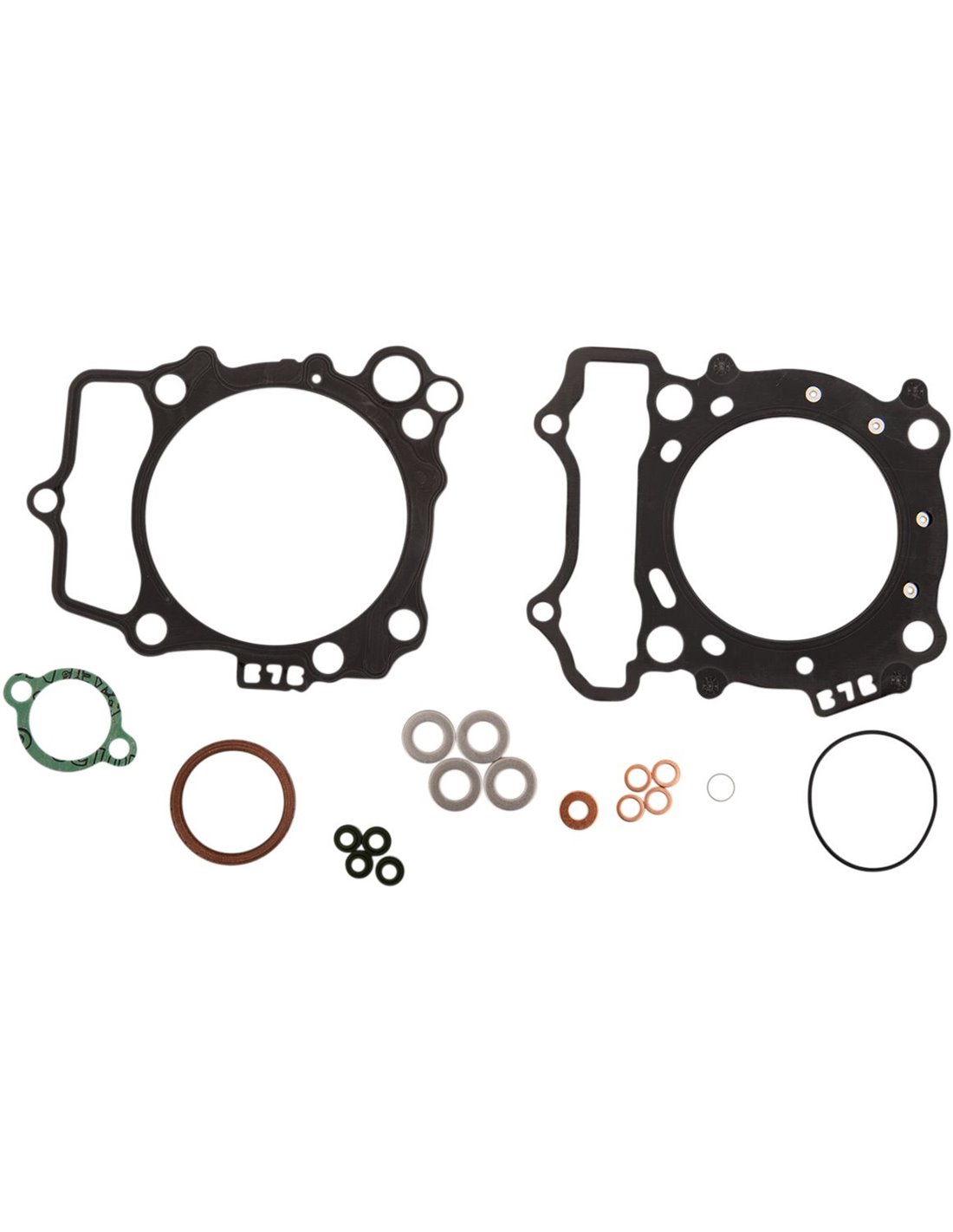 Jeu de joints de qualité supérieure d'Athena S.p.A. Joints de culasse en tôle ondulée caoutchoutée Les joints de base de cylindre en acier doux sont revêtus de caoutchouc Les matériaux de base en acier ont une résistance à la traction élevée et une pression constante Revêtement transparent révolutionnaire qui garantit une étanchéité parfaite même à des températures extrêmes Moulage en silicone bleu haute température sur les joints plats les plus critiques Les kits de joints supérieurs du moteur comprennent tous les joints nécessaires pour reconstruire le haut du moteur à partir du joint de base du cylindre vers le haut, y compris tous les joints en caoutchouc tels que les joints de culasse, les joints toriques et le joint.