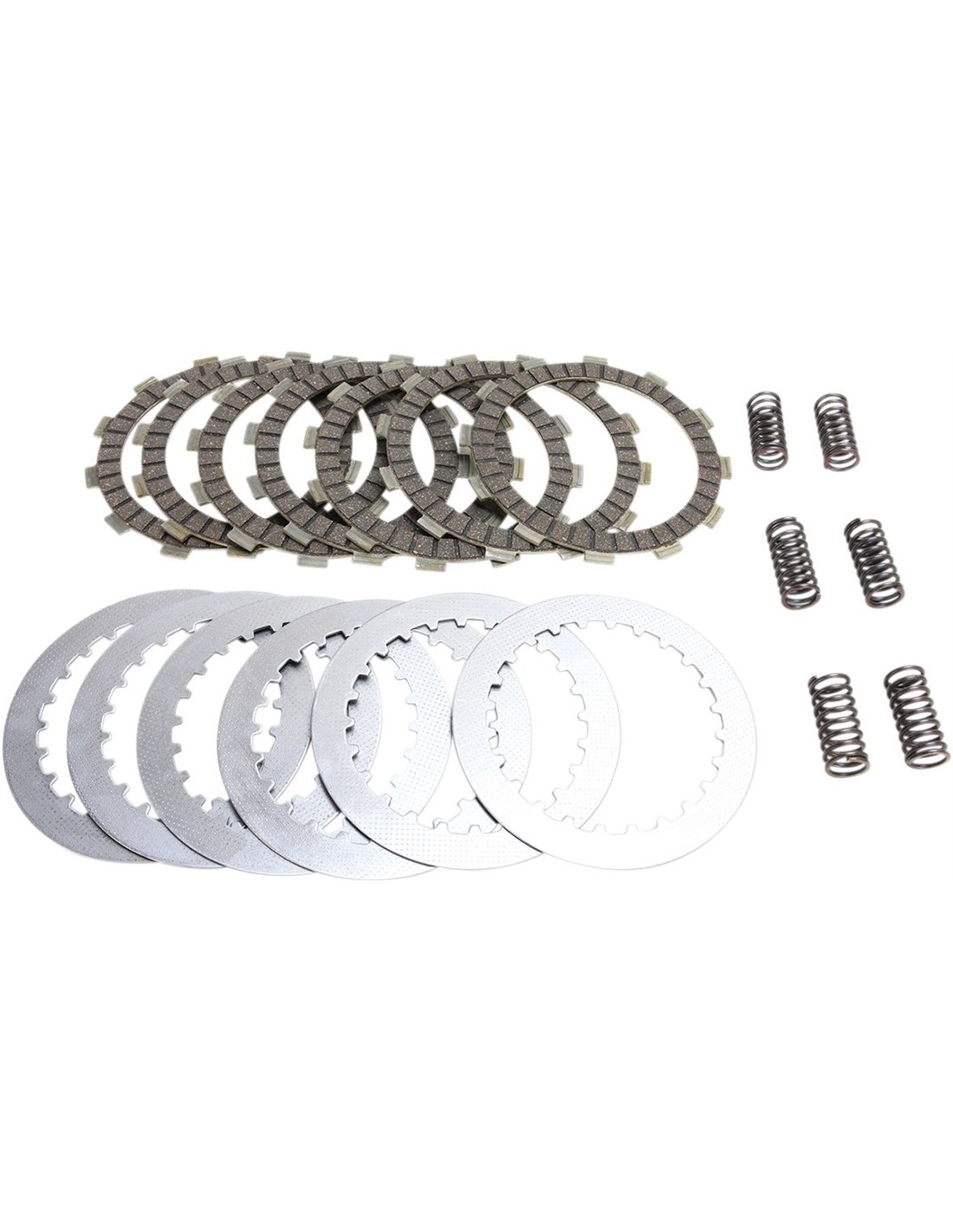 Revêtements antidéflagrants à base de liège imprégnés d'alliage pour une prise d'embrayage en douceur. Permettre la modulation, contrairement aux embrayages en papier qui ont tendance à s'arracher. Ensemble moteur complet de plaques de friction, de ressorts HD et de plaques de séparation en acier empêchant l'usure prématurée des plaques entraînées, la formation de boue dans l'huile et la perte de hauteur de la pile. Construit avec des supports en aluminium swagged qui répartissent la charge sur le panier d'embrayage et empêchent le panier d'embrayage de "gripper". 10 à 15% de ressorts d'embrayage renforcés.