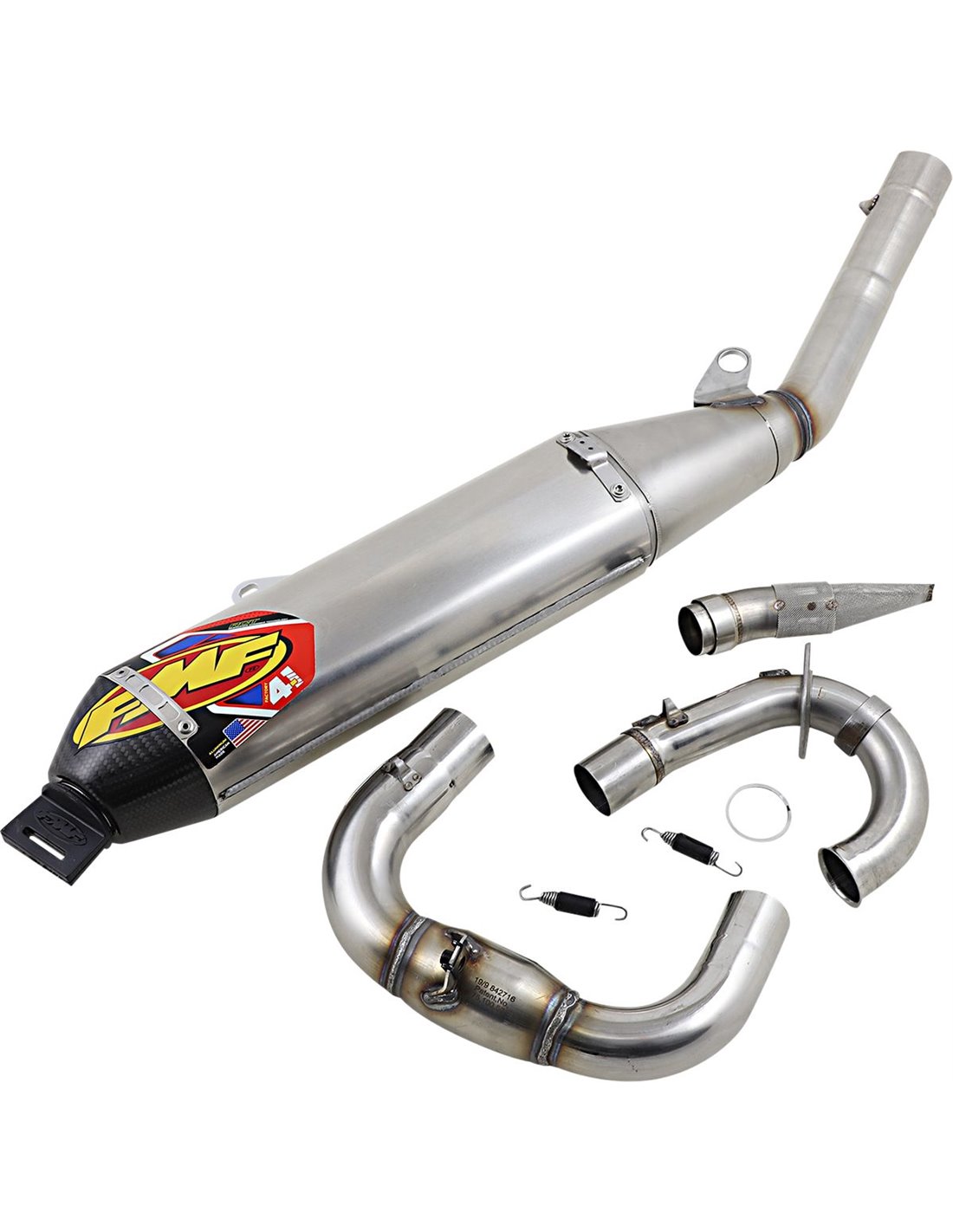 Le Factory 4.1 RCT intègre la dernière technologie FMF Resonance Chamber Technology™ à la fois en interne et en externe. De plus, nous obtenons une longueur totale plus courte qui est moins sensible aux dommages causés par les collisions et complémentaire à notre ingénierie avancée d'usine - en rapprochant le silencieux du moteur pour centraliser la masse. L'usine 4.1 RCT est construite uniquement à partir de matériaux de qualité aérospatiale qui répondent à nos spécifications rigoureuses et est fabriquée à 100% dans notre usine du sud de la Californie. -Disponible en aluminium naturel avec embout en fibre de carbone -Gains de puissance massifs sur toute la plage de régime. -Énorme gain de poids -Nouveau RTS (Rapid Tuning System) -FMF utilise un mélange d'acier inoxydable exclusif de la plus haute qualité, spécialement conçu selon nos normes.