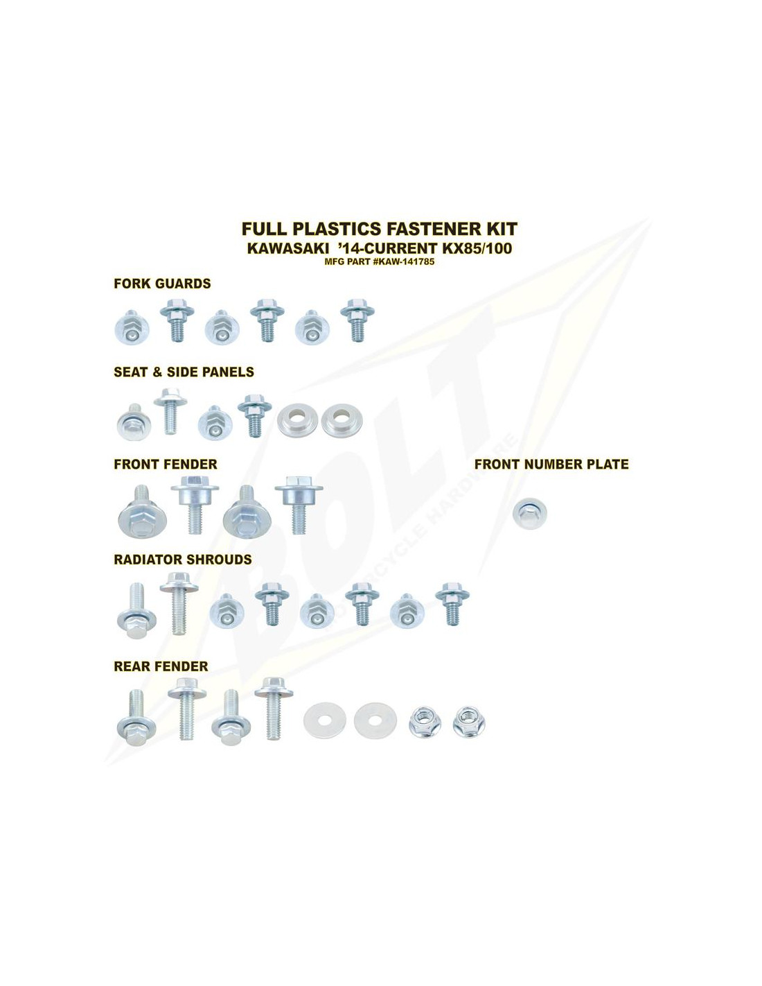 Kit Sujeción Plásticos KX85/100(14-20) Bolt KAW-141785 - de la marque BOLT - avec référence: KAW-141785