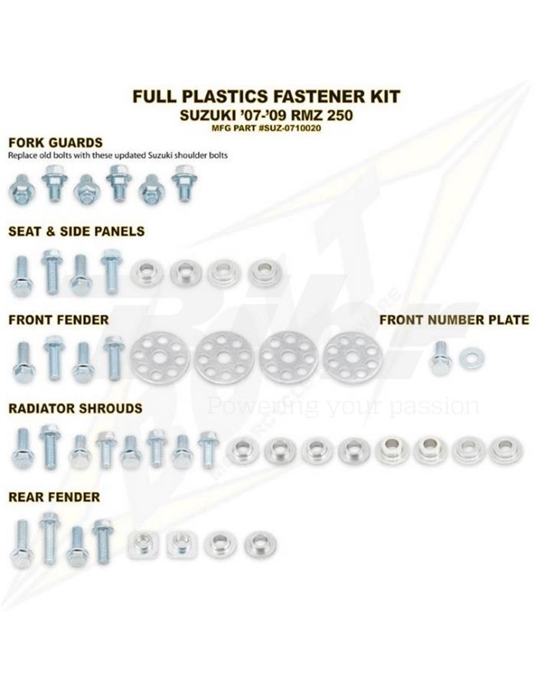 Boulon SUZ 07-09 Kit de visserie plastique RMZ250