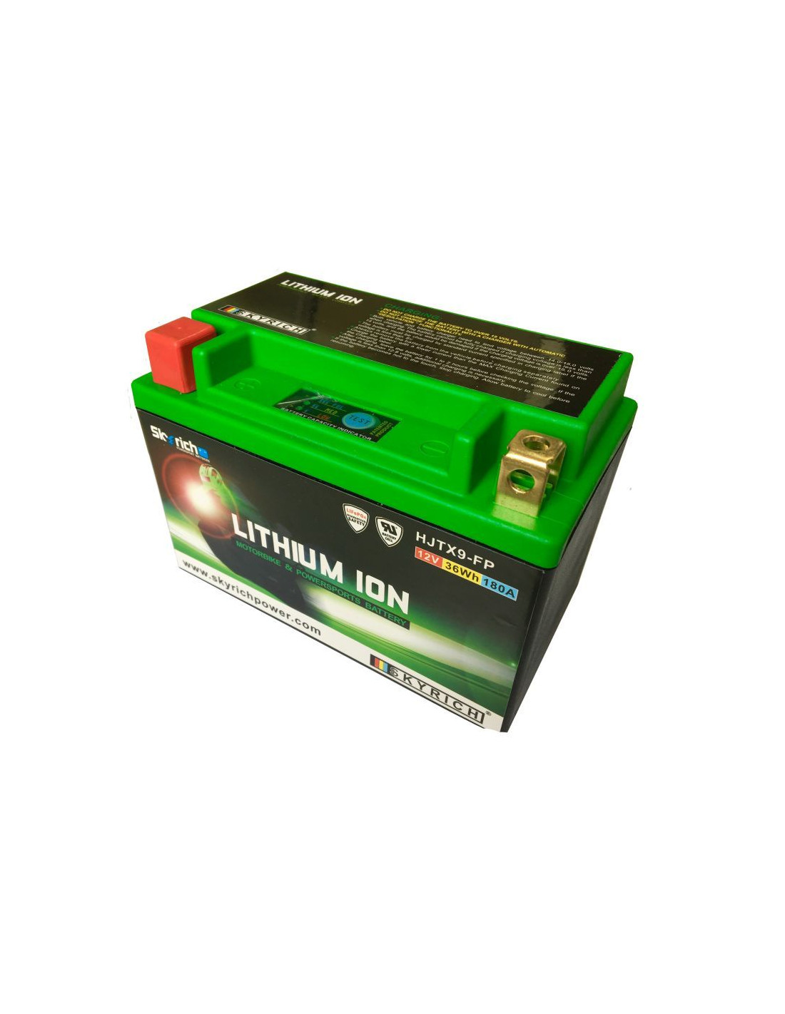 Livre de poluentes, a bateria de lítio Skyrich é feita de novos materiais (fosfato de ferro-lítio de alta densidade - LiFePO4) e não contém chumbo, mercúrio, cádmio ou ácido sulfúrico, e sua densidade de energia é três vezes maior que a de uma bateria de chumbo-ácido comum.