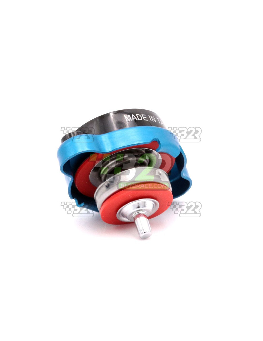 O produto de código 1903-0010 inclui um adesivo metálico de advertência de alta temperatura, bordas ranhuradas para melhor aderência e a pressão nominal impressa na tampa: 16 psi (padrão) e 1.1K (métrico).