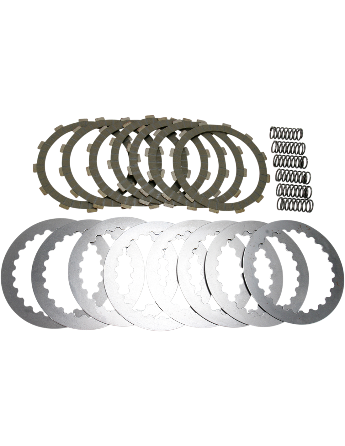 Revestimentos à base de cortiça para serviços pesados impregnados de liga anti-intumescimento para um levantamento suave da embreagem. Permitir modulação, ao contrário de embreagens de papel que tendem a arrebatar. Conjunto completo de placas de fricção do motor, molas HD e placas separadoras UX aço evita o desgaste prematuro da placa acionada, turvação de óleo e perda de altura da pilha. Construído com transportadores de alumínio rebatidos que distribuem a carga na cesta da embreagem e evitam que a cesta fique presa. 10-15% de molas de embreagem reforçadas.