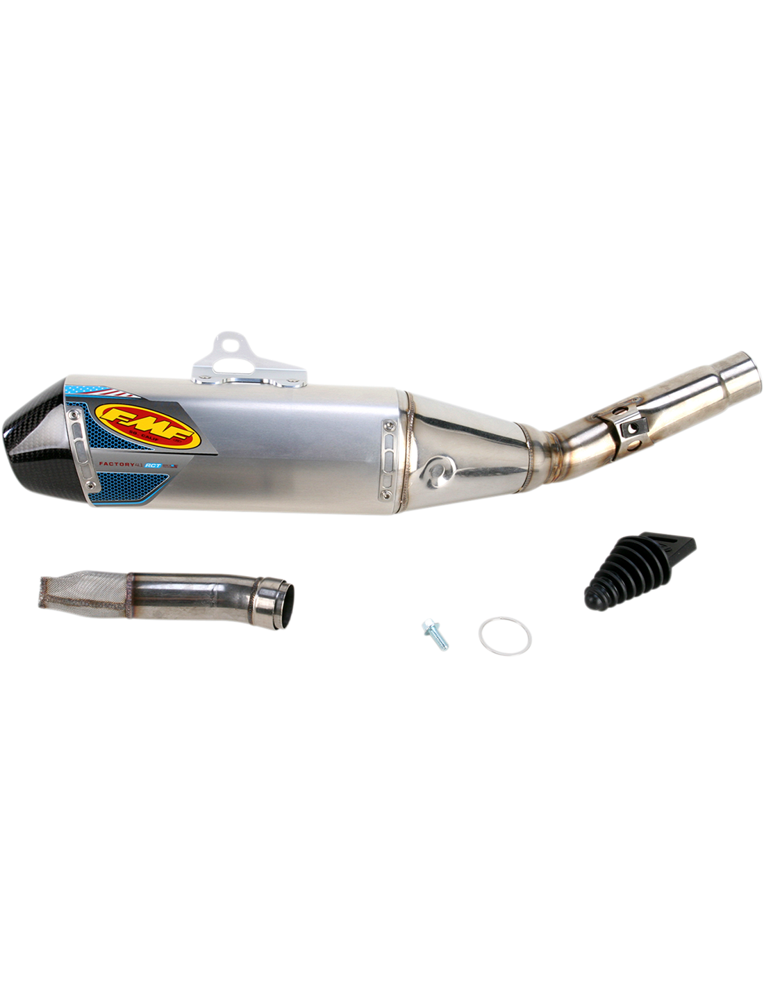 Factory 4.1 RCT incorpora FMF Resonance Chamber Technology ™ tanto interna quanto externamente. Além disso, o FMF atinge um comprimento geral mais curto, menos suscetível a danos em caso de queda e complementar à sua Engenharia Avançada de Fábrica. aproximando o silencioso do motor para centralizar a massa. O Factory 4.1 RCT é feito apenas de materiais de grau aeroespacial que atendem às suas especificações exatas e é 100% fabricado em sua fábrica no sul da Califórnia. Potência extrema em toda a gama de rotações. Economia de peso considerável. RTS (sistema de ajuste rápido)