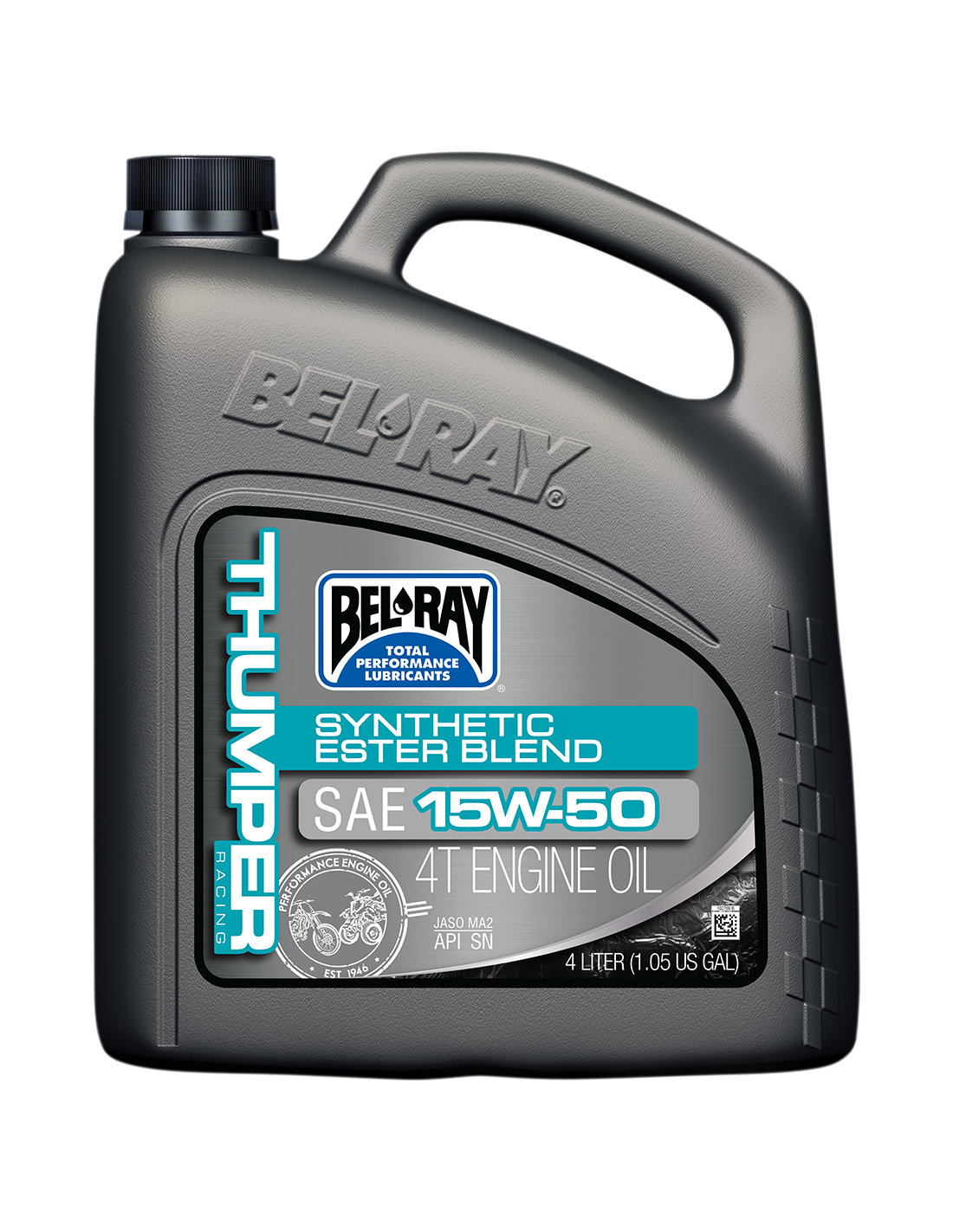 O óleo para motor 4T Bel-Ray Thumper Racing 15W-50 é um óleo de corrida de motocicleta de 4 tempos que combina os ésteres sintéticos da melhor qualidade e óleos de base mineral altamente refinados projetados especificamente para os motores de corrida multiválvulas e monocilíndricos de 4 tempos de hoje. Fornece proteção antidesgaste máxima para trens de válvulas, anéis, cilindros e pistões. Oferece potência máxima ao mesmo tempo em que oferece desempenho consistente da embreagem.