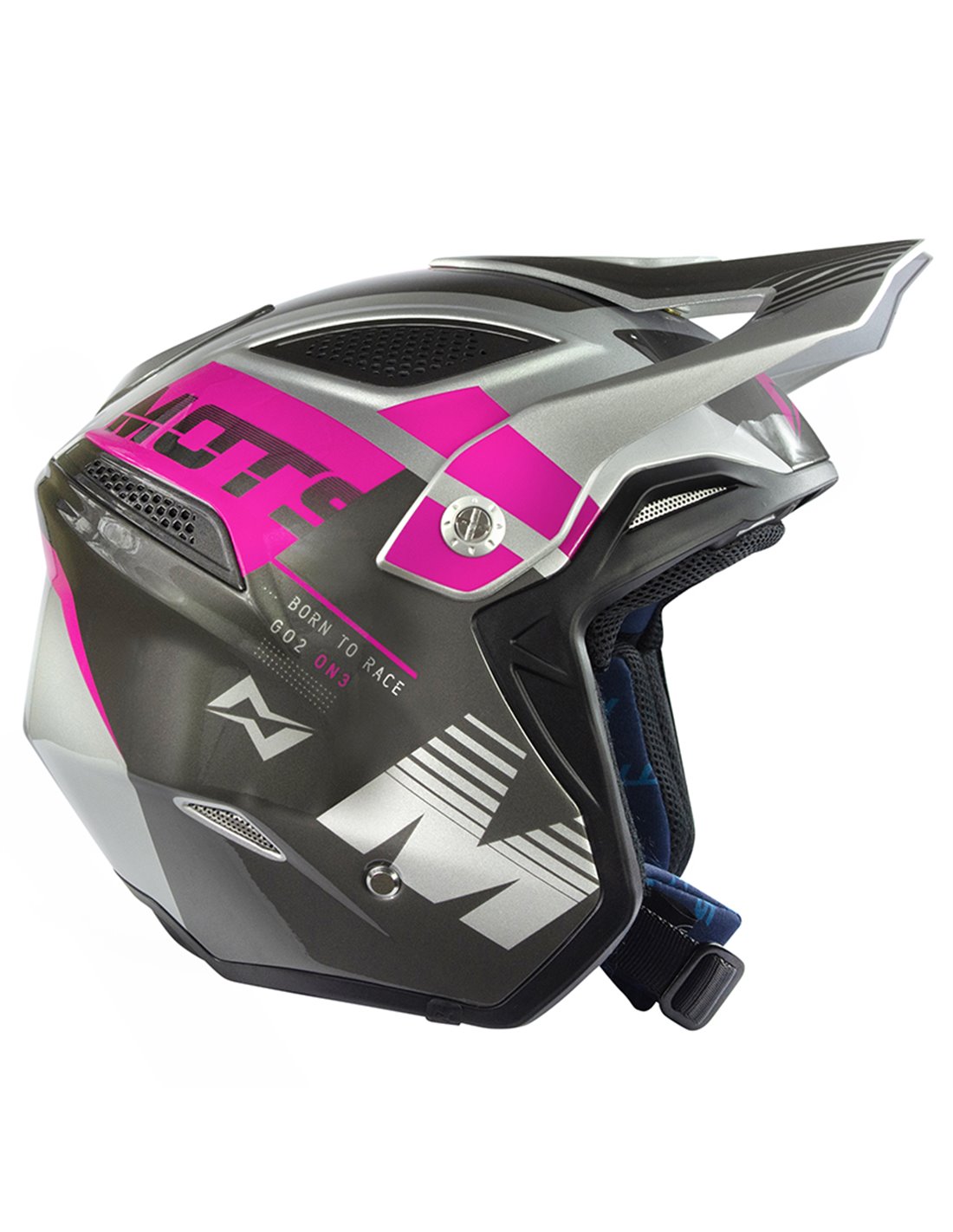 Casco MOTS GO2 Rosa M Fabricado en fibra de vidrio laminada con “bag-molding”. Dos tamaños de calota externa. Casco ventilado con entradas frontal, lateral y trasera. Interior de Coolmax para mayor absorción del sudor. Interior desmontable y lavable. Tornillos de aluminio. Cierre con hebilla micrométrica. Visera regulable y desmontable. Peso: +-900gr. Homologación ECE 22.0