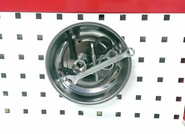 - Holds metal items such as nuts, bolts, washers, etc.