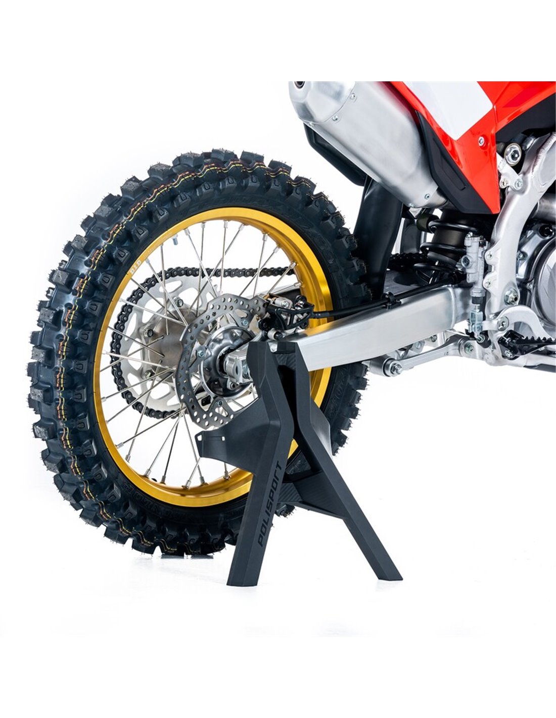Conozca el Trípode Multiusos, el nuevo producto de 3 funciones en el catálogo de Polisport: un soporte lateral, un protector de horquilla y un soporte horizontal, todo en una sola pieza. Diseñado para reducir la presión sobre las horquillas durante el transporte, también se puede utilizar como caballete lateral o como caballete horizontal, para ayudar a los pilotos y equipos a limpiar las motos.